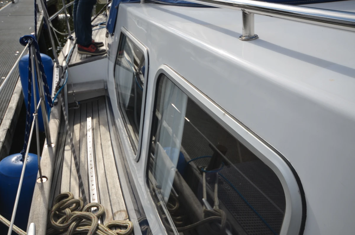 5 Stk. Winschkurbeln, 12 Festmacher, 6 hochwertige Fender, Trittfender, 2 große Kugelfender, Schleppleine, Reserveleinen, Reserve Soft-Wanten, Spanner, Schäkel etc.