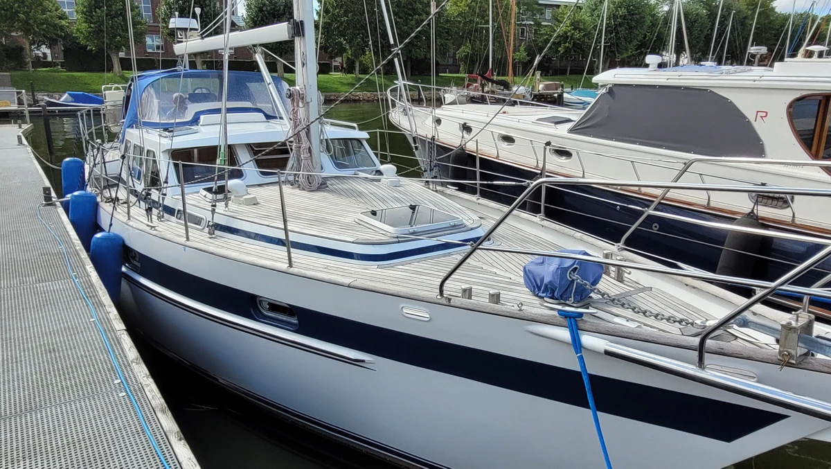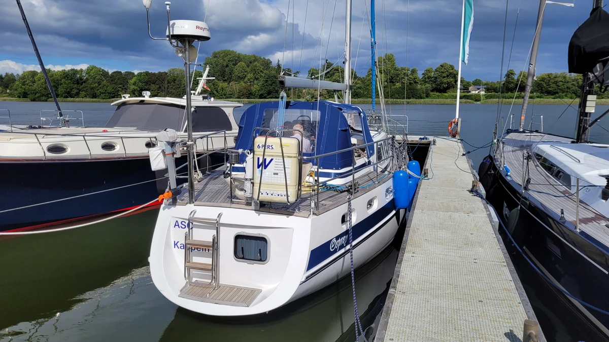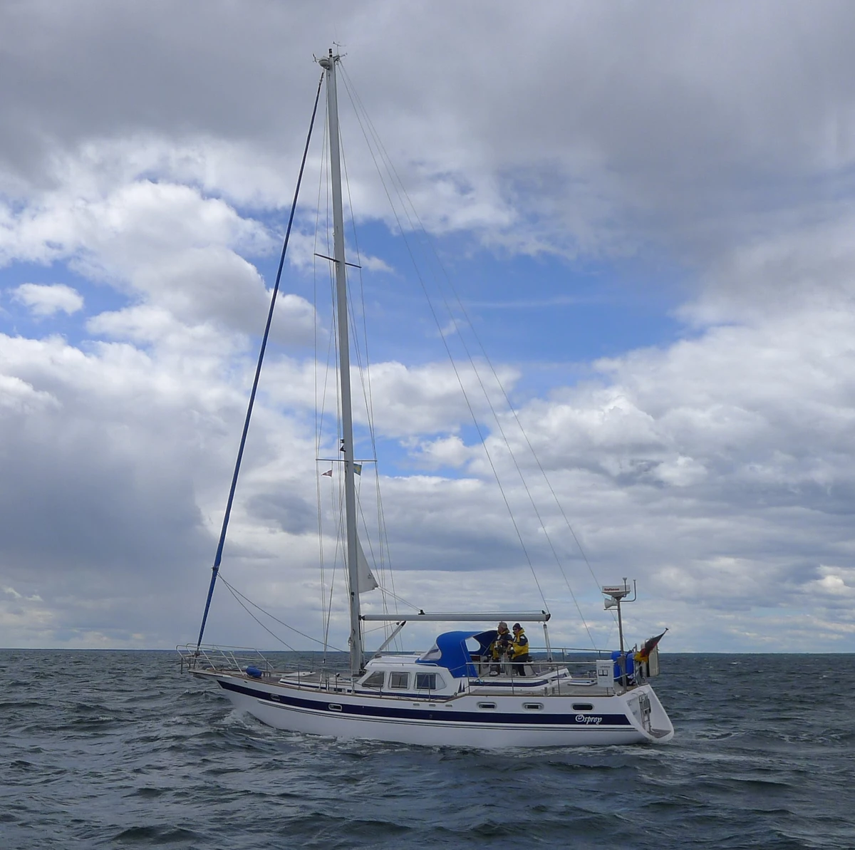 Mast/Rigg: Aluminium, 21 Meter, 13 Wanten (14 mit 2. Soft-Vorstag), Rollgenua (52 qm), neu 11/24, und Rollgroß (41 qm), neu 07/24, Spinnaker (120 qm mit Bergeschlauch) 01/23. Mit 2. Vorstag Sturmfock und Arbeitsfock an Stagreitern (2025 in Planung).