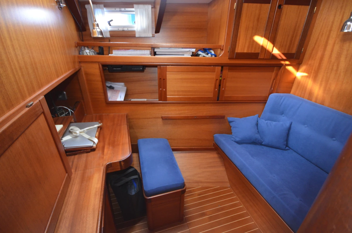 Komplette Ausstattung der Pantry, Bettwäsche incl. Laken und Bezügen, kleine Kissen, zusätzliche Kuscheldecken usw., Kuchenbude, Winterpersenning für komplettes Boot, Vorsegelschlauch, Ersatzteile wie Impeller, Filter, Kelriemen, Rollen, Bolzen, Splinte, Schrauben, Öle, Fette etc.