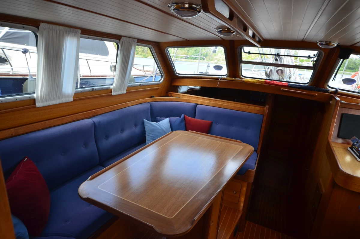 Material/Bauart: Stahl, Flammverzinkt, Rundspannt, gemäßigter Langkiel, Voll-Skeg, 4,5 Tonnen Blei am Kiel, Kollisionsschott, Rumpf 50 mm isoliert mit Holz-Innenschale. Alle Fenster und Luken in Glas, vorgespannt (Panzerglas).